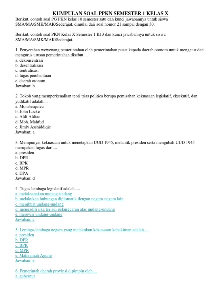 Kumpulan Soal Ppkn Semester 1 Kelas X