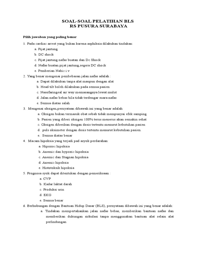 Soal Test berjumlah 100 soal seandainya anda menjawab sepe. Download Kunci Jawaban Pretest Atls PDF 1800 MB - SamPDF SamPDF 08788-9699-789 soal pretest btcls 2020 jadwal atls indonesia 2020 Kursus ACLS Advanced Cardiac Life Support Tahun 2020 TS Yang Terhormat Kami mengundang TS untuk mengikuti pelatihan ACLS Perki tahun 2020. Detail Soal Uji Kompetensi Perawat 2017 Pdf PDF dapat kamu nikmati dengan cara klik link download dibawah dengan mudah tanpa iklan yang mengganggu.