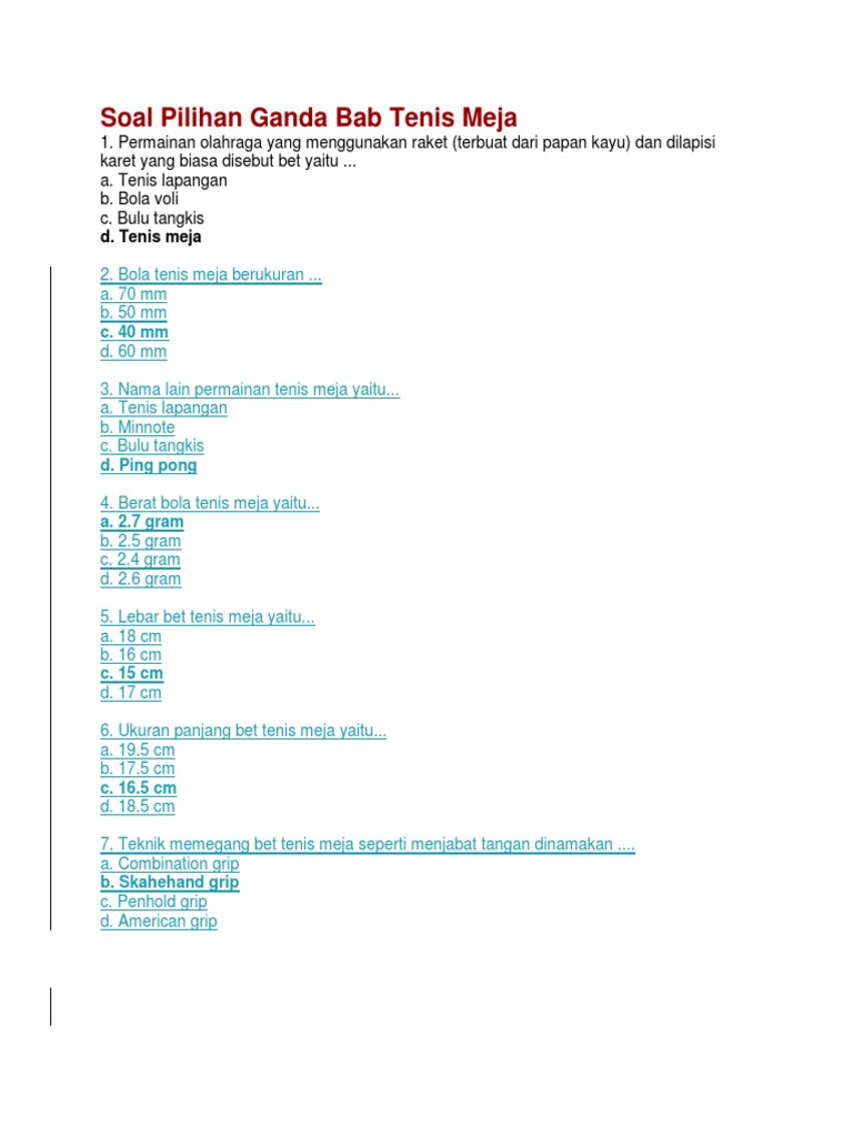 Soal Tenis Meja Pilihan Ganda Beserta Jawabannya Manglada Tech